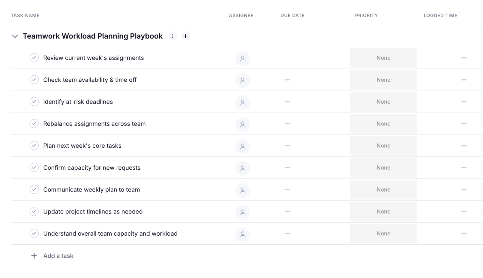Yes, the template is built to handle multiple clients, projects, and roles in one view so you can plan at a team level, not just per project. You group or tag tasks by client, project, or department and then use filters in Teamwork to zoom in on a specific slice of work or see the full picture across your agency.